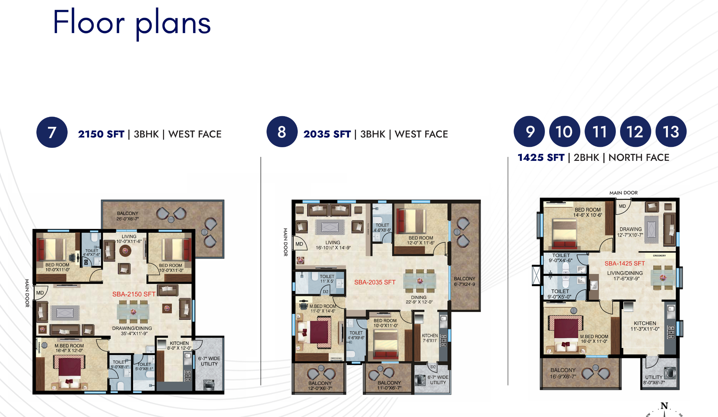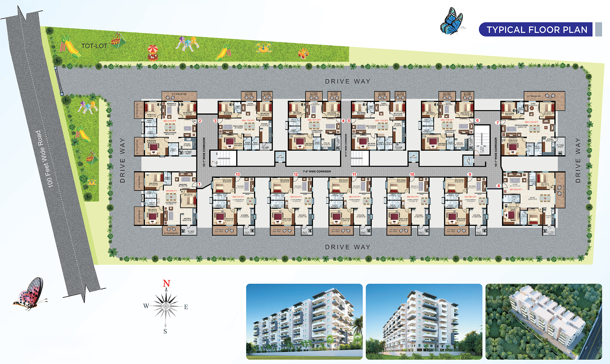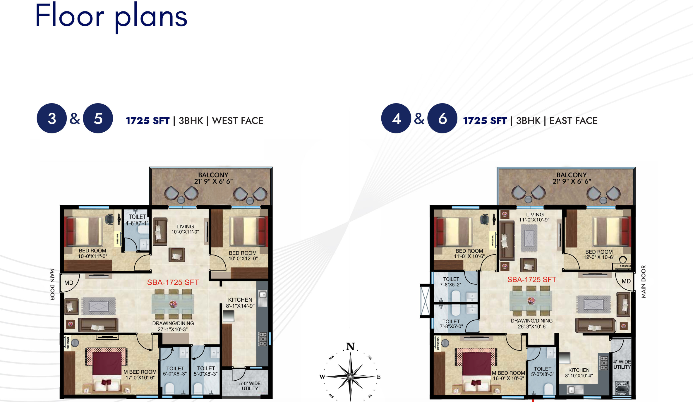 1,725 Sft | 3 BHK West Facing